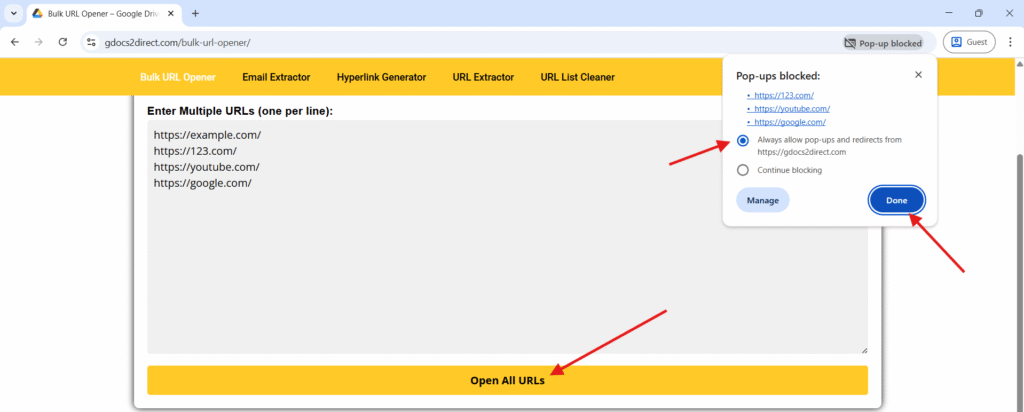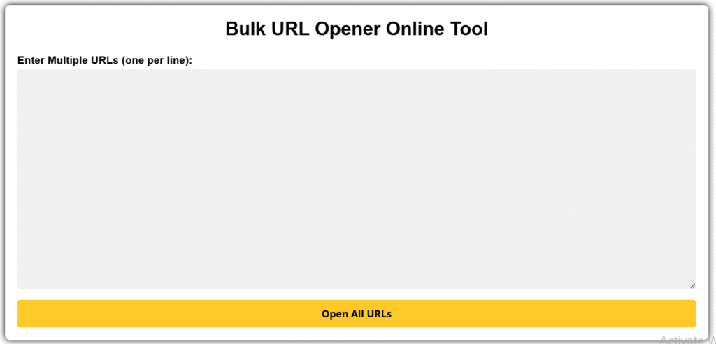 1. Open Bulk URL Opener Tool: Launch the Bulk URL Opener website or extension in your browser.